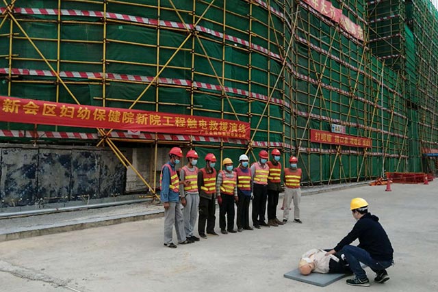 為了保障作業(yè)人員安全和財(cái)產(chǎn)免受損失,加強(qiáng)員工的觸電救援、消防意識(shí),提高意外事故的搶險(xiǎn)救援和自我防范能力,熟悉觸電救援、消防應(yīng)急方法。根據(jù)廣東省市場(chǎng)監(jiān)管局印發(fā)《關(guān)于全力推動(dòng)市場(chǎng)主體復(fù)工復(fù)產(chǎn)復(fù)市的通知》,結(jié)合防控疫情的形勢(shì),把復(fù)工復(fù)產(chǎn)工作抓實(shí)抓細(xì)抓落地,做到抗擊疫情和經(jīng)濟(jì)發(fā)展兩手抓、兩不誤。2020年4月13日,廣東金輝華集團(tuán)有限公司江門(mén)區(qū)域公司在新會(huì)區(qū)婦幼保健院新院工地舉行作業(yè)現(xiàn)場(chǎng)應(yīng)急處置演練,主要