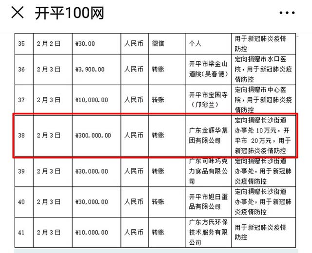 廣東金輝華集團(tuán)有限公司疫情防控貢獻(xiàn)和復(fù)工復(fù)產(chǎn)工作略記 一、涓涓細(xì)流,匯成大海;點(diǎn)點(diǎn)星光,照亮銀河。今年春節(jié),一場(chǎng)突如其來(lái)的新型冠狀病毒感染的肺炎疫情牽動(dòng)著每一個(gè)人的心,更牽動(dòng)著每一位金輝華人。新型冠狀病毒感染的肺炎疫情(簡(jiǎn)稱(chēng)“疫情”)發(fā)生后,在習(xí)近平總書(shū)記:生命重于泰山,疫情就是命令,防控就是責(zé)任的指引下,并在開(kāi)平市新冠肺炎疫情防控指揮部的統(tǒng)一部署下,開(kāi)平市紅十字會(huì),慈善會(huì)共同發(fā)布了《開(kāi)平市紅十字