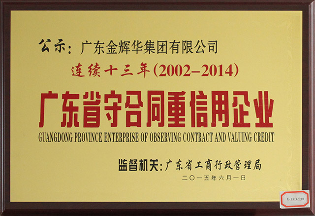 我集團(tuán)公司連續(xù)十三年獲得廣東省"守合同重信用企業(yè)"榮譽(yù)稱號(hào)