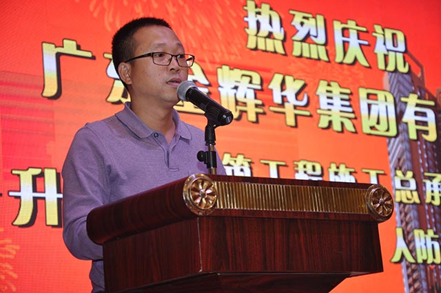 2014年11月22日,廣東金輝華集團(tuán)有限公司召開(kāi)我司晉升房屋建筑工程施工總承包特級(jí)和建筑行業(yè)(建筑工程、人防工程)甲級(jí)資質(zhì)的慶祝會(huì)。為了特級(jí),我們一起奮戰(zhàn)了六年,六年的經(jīng)歷歷歷在目!六年的艱辛回味甘甜!六年的耕種全面豐收!感謝各界部門(mén)領(lǐng)導(dǎo)的鼎力相助和金輝華全體員工的不懈努力,祝愿金輝華的明天更加輝煌。 集團(tuán)總裁李甫先生作晚會(huì)開(kāi)幕詞集團(tuán)董事局主席周珉興先生作重要講話集團(tuán)董事局主席周珉興先生帶領(lǐng)各集