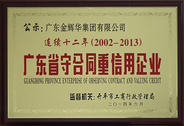 我集團(tuán)公司連續(xù)十二年獲得廣東省"守合同重信用企業(yè)"榮譽(yù)稱(chēng)號(hào)