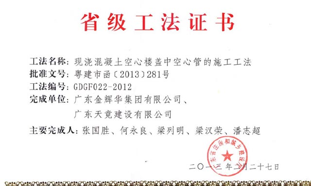 熱烈慶祝我公司工法“現(xiàn)澆混凝土空心樓蓋中空心管的施工工法”獲得省級(jí)工法。