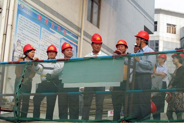 在黨的十八大召開之際,江門市政協(xié)主席趙基耀率隊視察了我集團公司總承包的江門市中心醫(yī)院外科住院大樓工程。2012年11月7日下午,政協(xié)主席趙基耀一行在市衛(wèi)生局、中心醫(yī)院院長梁伯進等人的陪同下來到我集團公司江門市中心醫(yī)院外科住院大樓項目部現(xiàn)場,詳細詢問并了解工程的最新情況,我集團公司副總裁陳達華對工程的進度、質(zhì)量、安全、施工環(huán)境、工人生活及工程對周邊居民的影響情況等進行了詳細的講解。 項目現(xiàn)場施工通