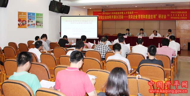 5月16日下午,開平市人才工作領(lǐng)導(dǎo)小組辦公室、市建設(shè)商會、市建筑行業(yè)人才培養(yǎng)基地聯(lián)合在廣東金輝華集團(tuán)有限公司舉辦“討論企業(yè)如何開展QC活動——淺談企業(yè)管理和質(zhì)量控制”研討會,推動和規(guī)范建筑業(yè)企業(yè)QC小組活動的健康開展,提高工程質(zhì)量管理水平和綜合素質(zhì)。研討會邀請了市政路橋?qū)I(yè)工程師、廣東金輝華集團(tuán)有限公司技術(shù)中心主任詹前進(jìn)作題為《探討論企業(yè)如何開展QC活動——淺談企業(yè)管理和質(zhì)量控制》的專題匯報,結(jié)合