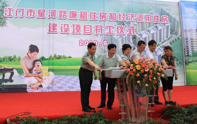 6月25日,我集團(tuán)公司承建的江門市星河路廉租住房和經(jīng)濟(jì)適用房建設(shè)項(xiàng)目開工儀式隆重舉行。市人大常委會(huì)副主任陳敏標(biāo)、副市長鐘軍、市政協(xié)副主席趙樹培、市委辦公室李光啟以及市住房和城鄉(xiāng)建設(shè)局局長馬克烈等領(lǐng)導(dǎo)和嘉賓出席了開工儀式。 在動(dòng)工儀式上,馬克烈介紹,星河路廉租住房和經(jīng)濟(jì)適用住房建設(shè)項(xiàng)目規(guī)劃投資約1.52億元,其中廉租住房約9400萬元,經(jīng)濟(jì)適用住房約5800萬元;規(guī)劃總用地面積22988.6平方米