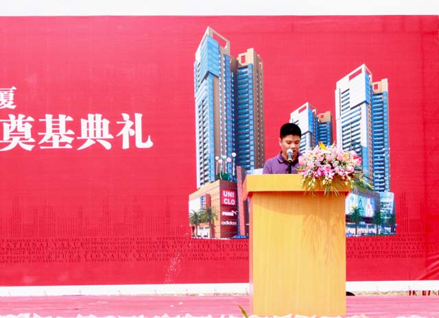 7月27日上午,鑼鼓喧天,喜樂齊鳴,我集團(tuán)公司綜合大廈項(xiàng)目舉行了盛大的奠基儀式。中國僑聯(lián)副主席、廣東省僑聯(lián)主席王榮寶,中紀(jì)委寧鋒鳴,中國建筑業(yè)協(xié)會(huì)質(zhì)監(jiān)分會(huì)會(huì)長吳松勤,廣東省、江門市有關(guān)部門領(lǐng)導(dǎo)、開平市領(lǐng)導(dǎo)黃耀雄、司徒振波、謝超武、莫健文、陳偉成、余榮深、梁和平、馮潤深、林國寧以及集團(tuán)公司董事局主席周珉興、董事長李甫等領(lǐng)導(dǎo)出席了奠基儀式。 開平市住宅與城鄉(xiāng)建設(shè)局局長吳進(jìn)進(jìn)主持奠基典禮集團(tuán)公司董事長李