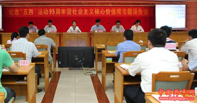 4月30日下午,開平市召開紀(jì)念五四運(yùn)動95周年暨社會主義核心價(jià)值觀專題報(bào)告會,加強(qiáng)社會主義核心價(jià)值觀教育,激發(fā)全市廣大團(tuán)員青年繼承弘揚(yáng)“五四”精神。市委常委、市委統(tǒng)戰(zhàn)部部長顏海娜出席會議并為獲獎單位和個(gè)人頒獎。 會議現(xiàn)場會議對榮獲“2013...