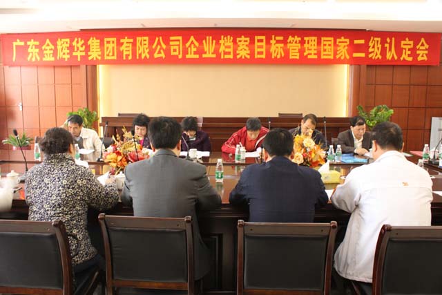2010年12月24日上午“廣東金輝華集團(tuán)有限公司企業(yè)檔案目標(biāo)管理國(guó)家二級(jí)認(rèn)定會(huì)”在集團(tuán)技術(shù)中心會(huì)議室舉行,我司最終以88.2分的高分通過(guò)了企業(yè)檔案目標(biāo)管理國(guó)家二級(jí)認(rèn)定。