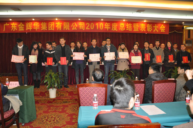 總結(jié)大會(huì)由集團(tuán)副總裁陳維民主持。會(huì)上,集團(tuán)董事長李甫發(fā)表新年致辭,總裁張國球作了《金輝華,滿懷豪情再出發(fā)》的2010年終總結(jié)及2011年工作計(jì)劃匯報(bào)講話,重點(diǎn)對(duì)企業(yè)申報(bào)特級(jí)、強(qiáng)化團(tuán)隊(duì)建設(shè)、進(jìn)一步明晰、健全和完善業(yè)務(wù)工作流程和抓緊科研項(xiàng)目實(shí)施,對(duì)2011年生產(chǎn)經(jīng)營工作進(jìn)行了安排和部署。黨委書記張解矛和開平國泰康庭置業(yè)有限公司總經(jīng)理周雪峰分別作了工作發(fā)言。最后,開平市住房和城鄉(xiāng)建設(shè)局局長吳進(jìn)進(jìn)對(duì)金輝華集團(tuán)一年來的工作作了肯定、贊揚(yáng)和勉勵(lì),并祝金輝華集團(tuán)在新的一年團(tuán)結(jié)一致,揚(yáng)起創(chuàng)新的風(fēng)帆,在和諧發(fā)展的同時(shí),2011年勝利沖刺特級(jí)資質(zhì)企業(yè)。