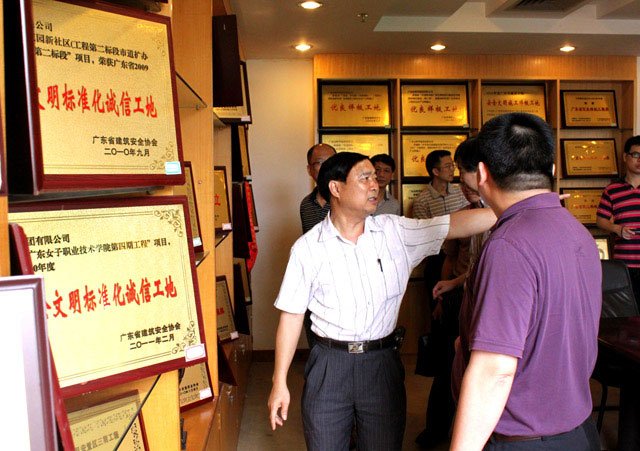 圖為共建活動(dòng)啟動(dòng)儀式出席人員參觀我集團(tuán)的黨工青婦活動(dòng)室,我集團(tuán)公司黨委書(shū)記張解矛正在向江門(mén)國(guó)稅局黨委書(shū)記陳惠眾、開(kāi)平市組織部副部長(zhǎng)劉威龍、開(kāi)平市長(zhǎng)沙街道辦事處黨政辦主任陳國(guó)強(qiáng)及其他與會(huì)人員介紹情況