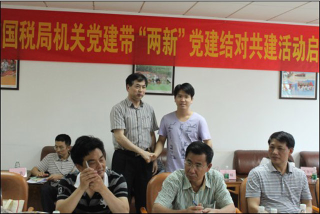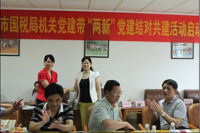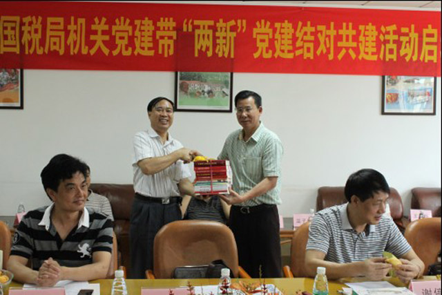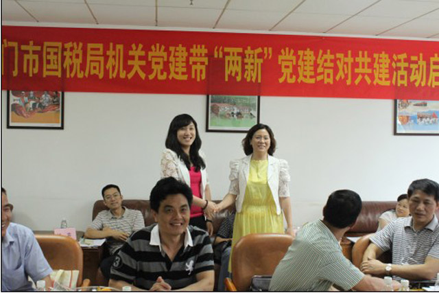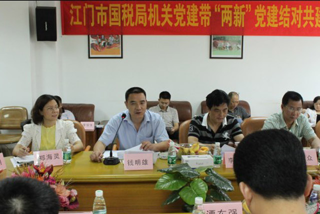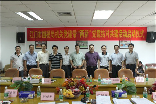 圖為江門(mén)市國(guó)稅局五、六支部與我集團(tuán)黨委江門(mén)支部結(jié)對(duì)