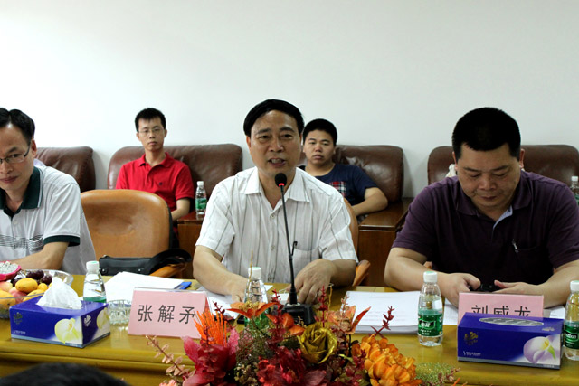圖為我集團(tuán)黨委書(shū)記張解矛在介紹我集團(tuán)黨委的情況