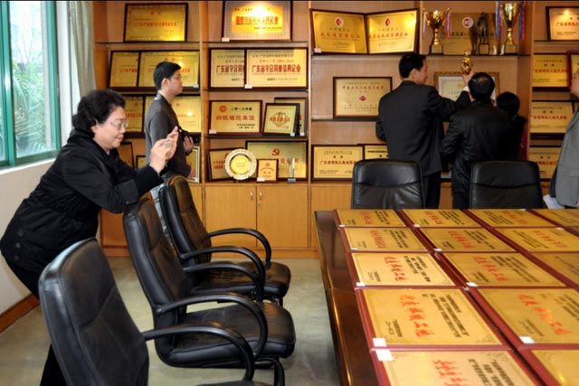圖為省督導組組長南方廣播影視傳媒集團原黨委書記白玲同志正在對我司的榮譽證書進行拍照作為調(diào)研材料。