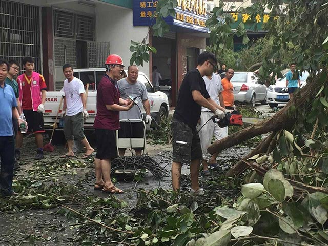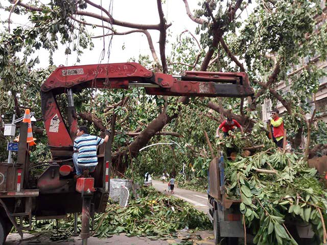 2017年8月23日中午12點50分,第13號臺風“天鴿”正面襲擊珠海市,大批樹木被攔腰折斷或連根拔起,造成大部分主干道堵塞,嚴重影響當?shù)鼐用窆ぷ骱蜕??!疤鞛臒o情人有情”,我集團珠海公司在獲悉災情后,迅速行動,組織人員和車輛,全力以赴針對突出的受阻道路進行清理工作。在安平路、桃園路、海虹路、東風路等路段,隨處可見殘樹斷枝錯亂橫陳,珠海公司員工與當?shù)鼐用褚黄鹎鍜呃?,搬移樹木。直到該路段清障工作完成,道路交通基本恢復?/font>