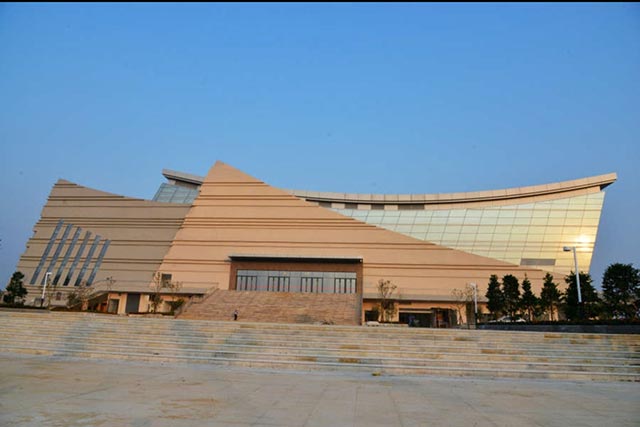 ㎡,建筑總高度29.41m,其中地上三層,地下一層,該工程看臺為鋼筋混凝土結(jié)構(gòu),周邊及屋面圍護為整體鋼結(jié)構(gòu),看臺平面呈八角形。臺山體育館總體造型是根據(jù)臺山市的地理位置,以“海浪”為設計載體,呈現(xiàn)三個“海浪”的建筑設計造型。主館由兩個“海浪”組成,副館由一個“海浪”組成,主次分明,造型獨特,構(gòu)思巧妙,雄偉壯觀,象征著臺山人民艱苦奮斗、不畏險阻、乘風破浪、勝利凱旋。