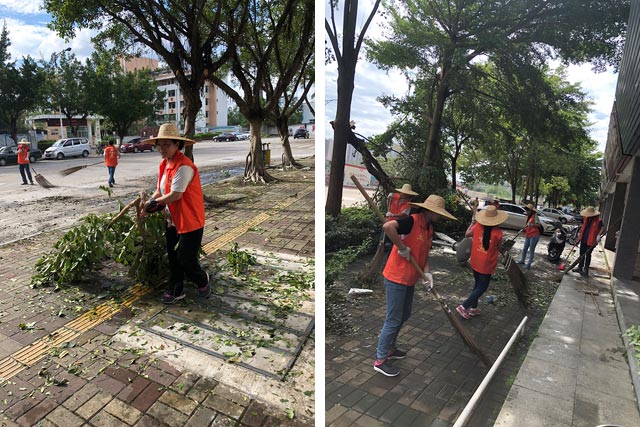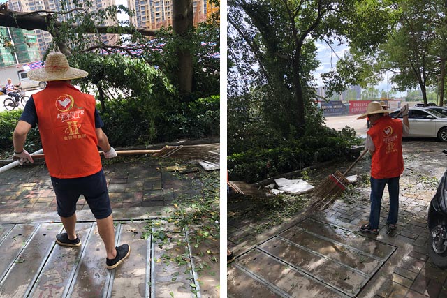 在清理路障現(xiàn) 場(chǎng),公司黨委書(shū)記張解矛帶領(lǐng)大家一起頂烈日冒酷暑,搬樹(shù)枝、掃殘葉、清廢物,將路面清理打掃干凈。