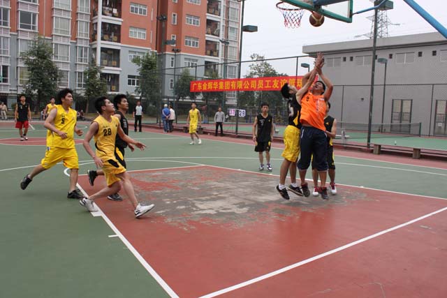 2013年1月26日早上,天富豪庭籃球場上吶喊助威加油聲此起彼伏,熱鬧非凡,廣東金輝華集團有限公司員工友誼籃球賽正在進行中。場上,比賽者積極,觀戰(zhàn)者投入,競爭非常激烈,球賽熱烈精彩。