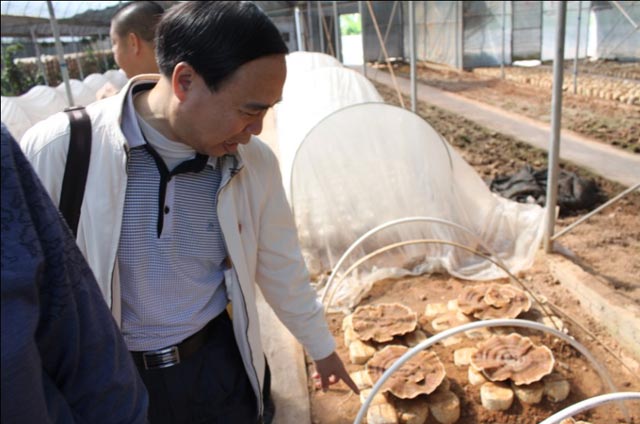 張書記指著正在培育中的靈芝說:“看哪朵更大!”
