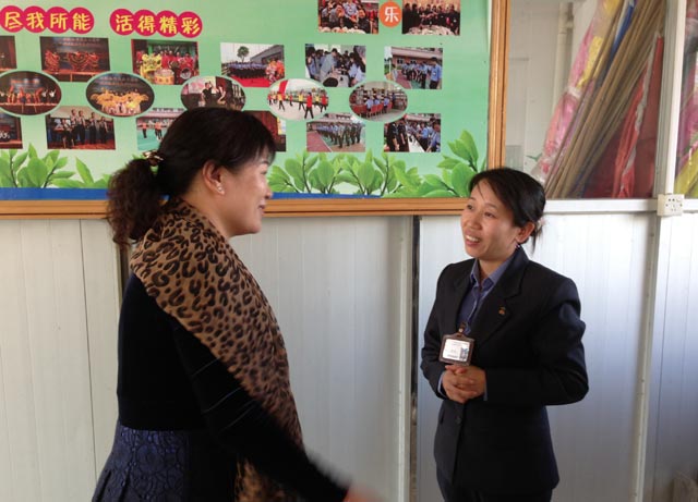 開平黨支部副書記高迎春同志與海鴻公司黨支部的鄭玲同志在親切交流