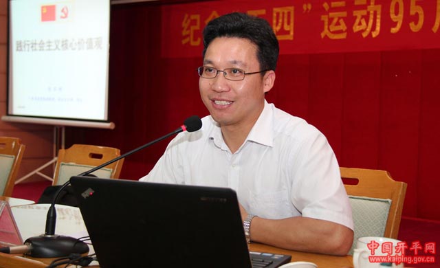 4月30日下午,開平市召開紀(jì)念五四運(yùn)動95周年暨社會主義核心價(jià)值觀專題報(bào)告會,加強(qiáng)社會主義核心價(jià)值觀教育,激發(fā)全市廣大團(tuán)員青年繼承弘揚(yáng)“五四”精神。市委常委、市委統(tǒng)戰(zhàn)部部長顏海娜出席會議并為獲獎單位和個人頒獎。