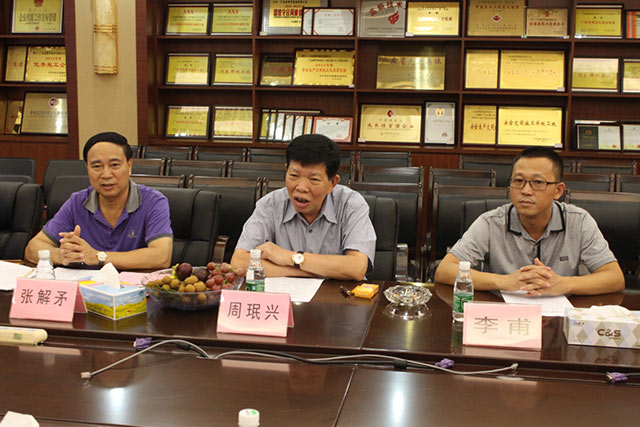 根據(jù)江門市委組織部、市“兩新”組織黨工委關于開展新一輪機關黨建帶“兩新”黨建結(jié)對共建活動的安排,2015.7.14日江門市工商局容新榮局長帶隊到我司進行座談交流傳經(jīng),了解企業(yè)的需求,為今后共建活動各階段工作的開展打下基礎。開平市工商局張永健局長與長沙街道黨工委委員荊筱磊也一起參加。