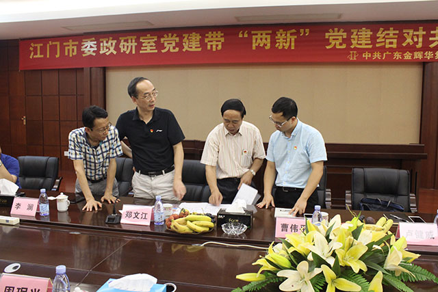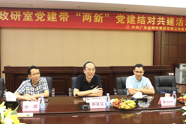 為切實加強“兩新”黨建工作,鞏固“結(jié)對共建”成果,推動黨建創(chuàng)新發(fā)展,6月14日下午,江門市委秘書長、市委政研室主任、市委改革辦主任鄭文江,市委政研室副主任、黨支部書記李瀾一行到我司開展黨建專題調(diào)研,并召開黨建“結(jié)對共建”工作座談會。開平市委辦副主任曹偉平、長沙街道辦黨工委委員蘇國亮、我司董事局主席周珉興、黨委書記、副總裁張解矛、黨委副書記、副總裁盧文權(quán)、工會主席陳維民以及我司黨委班子成員參加了會議。