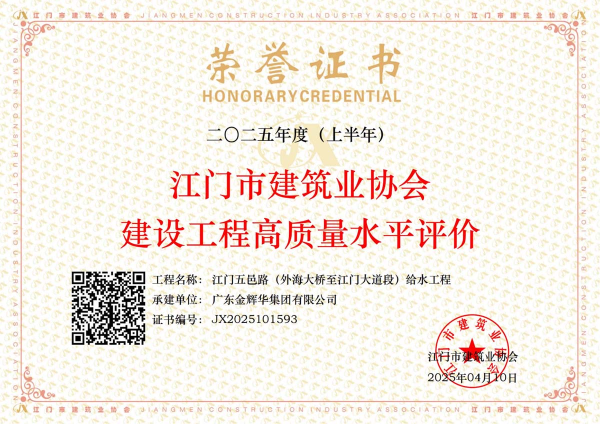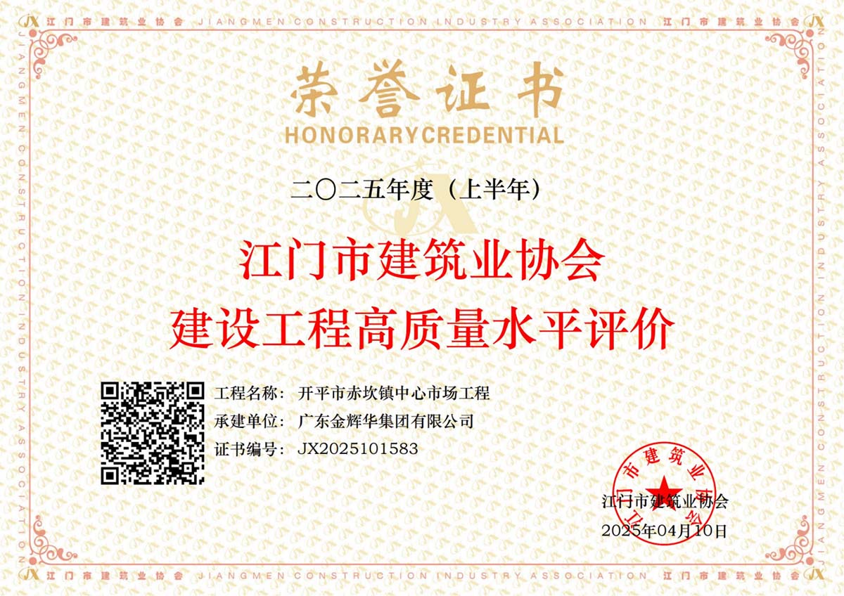 獲江門市建筑業(yè)協(xié)會建筑工程高質(zhì)量水平評價2項