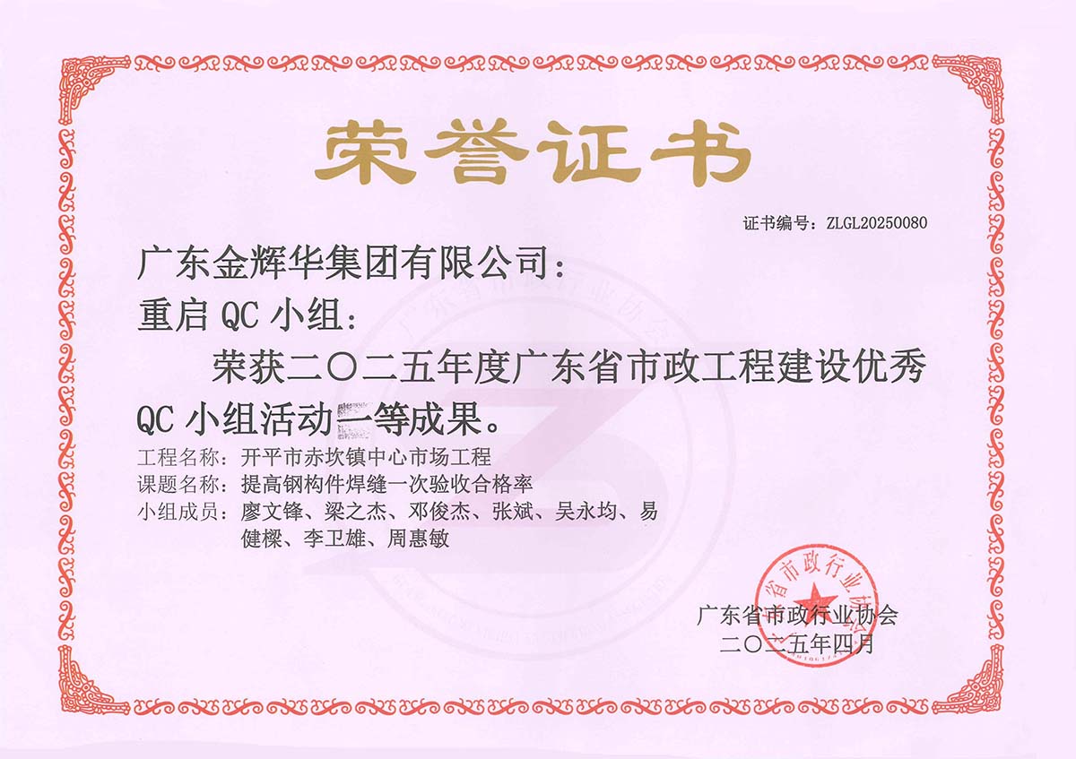 獲廣東省市政工程建設(shè)優(yōu)秀QC小組活動成果3項