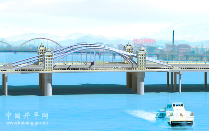 潭江大橋是我市城區(qū)建設(shè)時間最早的大型橋梁之一,是往來長沙、新昌最繁忙的交通樞紐,現(xiàn)在的潭江大橋分兩個時期建成,前期部分建于1963年,后期部分建于1978年。經(jīng)過40多年的使用,兩部分的橋梁都存在不同程度的損壞,其中前期建的橋梁2004年鑒定為危橋。2006年市委、市政府決定在原址重建潭江大橋。新設(shè)計(jì)的潭江大橋總長328米,橋?qū)?1.5米,雙向6車道,共15跨,主跨為60米,通航孔凈高不小于5米,通航孔凈寬46米。新橋施工招標(biāo)中標(biāo)價約為5564萬元,計(jì)劃2011年上半年完工。新橋設(shè)計(jì)新穎,充分融合了開平碉樓文化元素,建成后對解決目前城區(qū)交通擁擠的現(xiàn)狀、對建設(shè)生態(tài)宜居城市、繁榮城市經(jīng)濟(jì)將產(chǎn)生積極重要作用,是三埠城區(qū)的標(biāo)志性建筑之一。