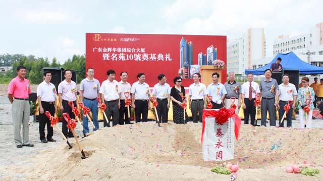 集團(tuán)公司董事長李甫在奠基儀式上介紹說:“廣東金輝華集團(tuán)綜合大廈是集團(tuán)公司省級技術(shù)中心的辦公樓和專家樓,它的建設(shè)是開平市委、市政府提出的打造開平市城市標(biāo)志性建筑的一項重要舉措,是金輝華集團(tuán)爭創(chuàng)省級新技術(shù)應(yīng)用示范工程及國家級優(yōu)質(zhì)工程的項目。在市委市政府及有關(guān)主管部門的大力支持和關(guān)懷下,該項目計劃在兩年內(nèi)竣工并投入使用?!?